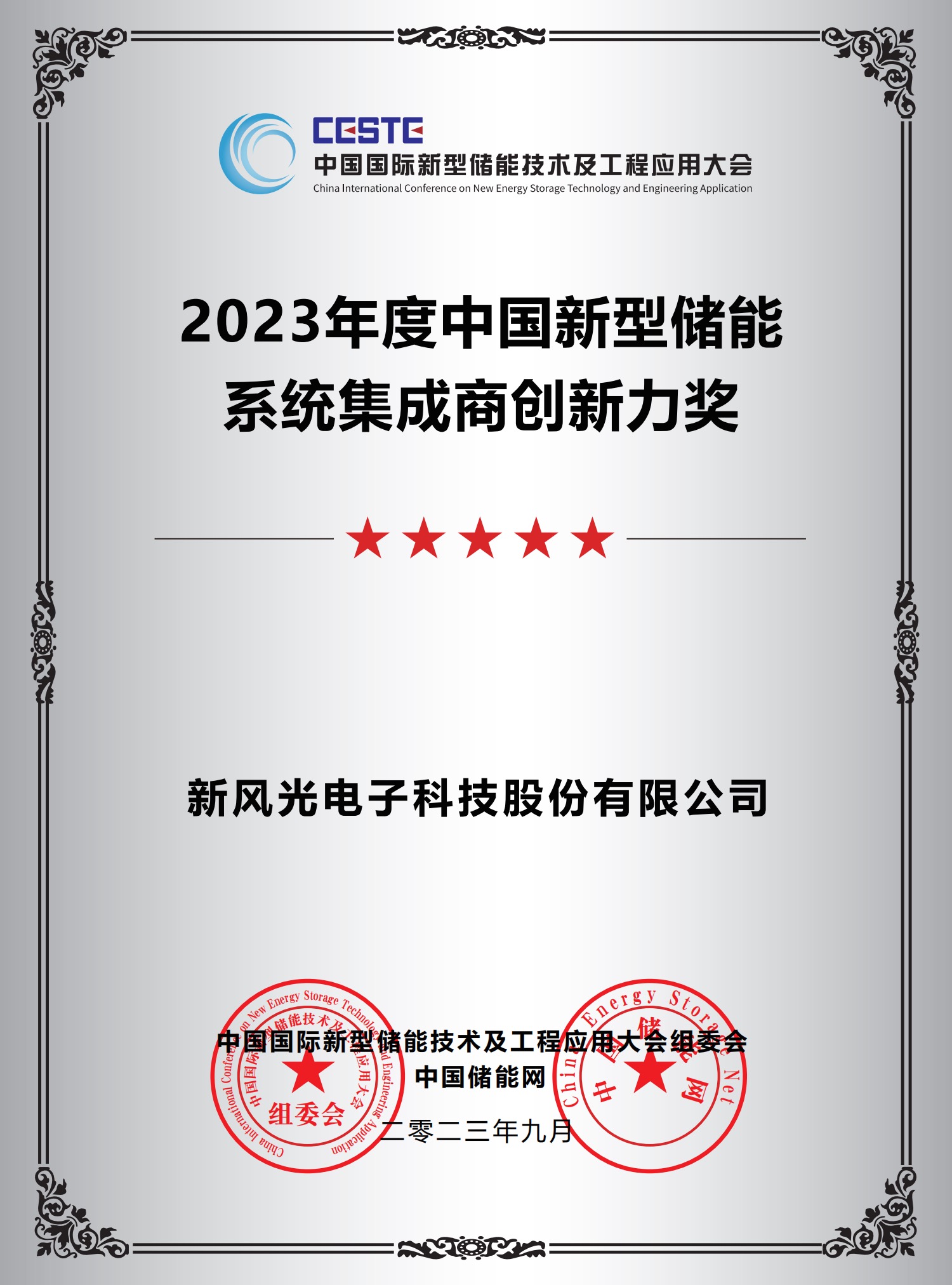 2023年度中國新型儲能系統(tǒng)集成商創(chuàng)新力獎