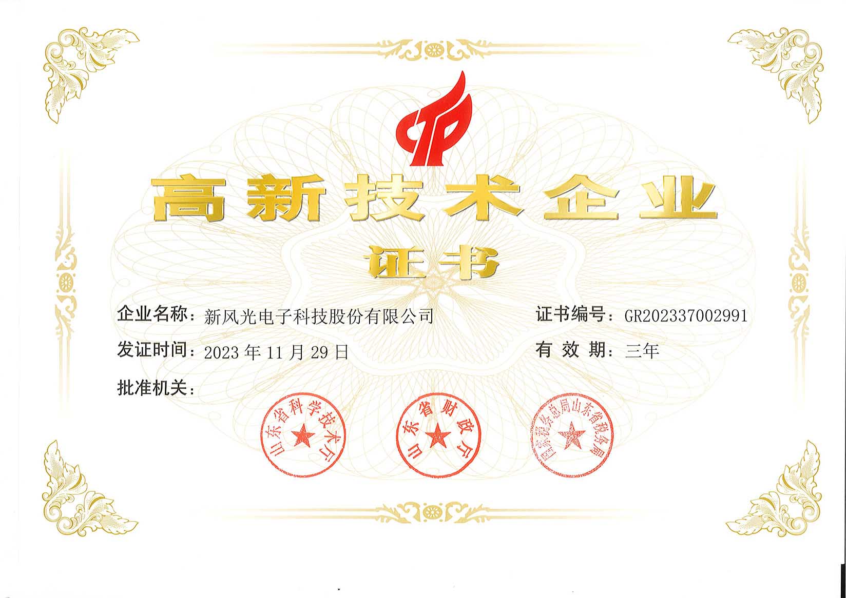 高新技術(shù)企業(yè)證書