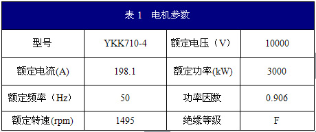 /3000kW三相鼠籠式異步電動機(電機參數(shù)如表1所示),根據(jù)蒸發(fā)風機的要求2559kW,轉(zhuǎn)速2564