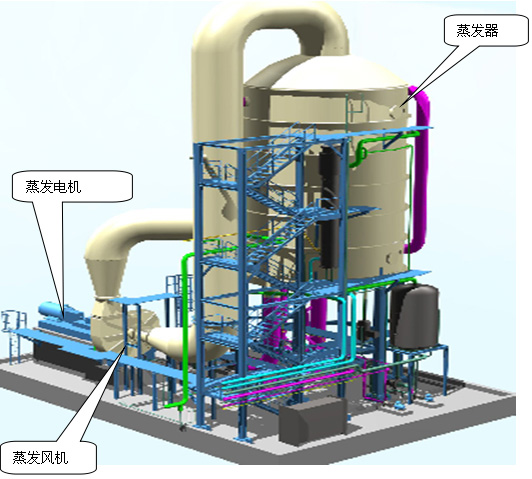 蒸發(fā)工段所采用的蒸發(fā)風機是由蒸發(fā)器的渦輪式風機要求轉(zhuǎn)速在2564rpm下可以達到151.3T/H