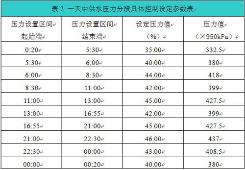 現(xiàn)場(chǎng)采用壓力閉環(huán)控制,每天分十個(gè)時(shí)間段來控制給定壓力,具體設(shè)定壓力分段如表2所示。