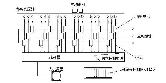 IGBT逆變橋的控制方式為PWM控制,并且有自動單元旁路功能,大大提高系統(tǒng)運行的可靠性。