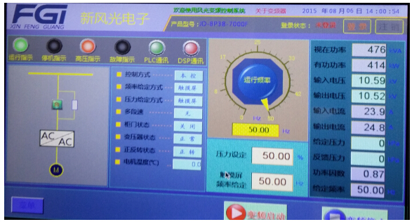 (2)高壓變頻電源的運行參數(shù)及各種指示在觸摸屏均有顯示。