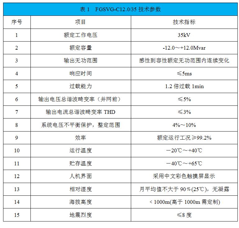 新風(fēng)光FGSVG-C12.0/35技術(shù)指標(biāo)如表1所示。