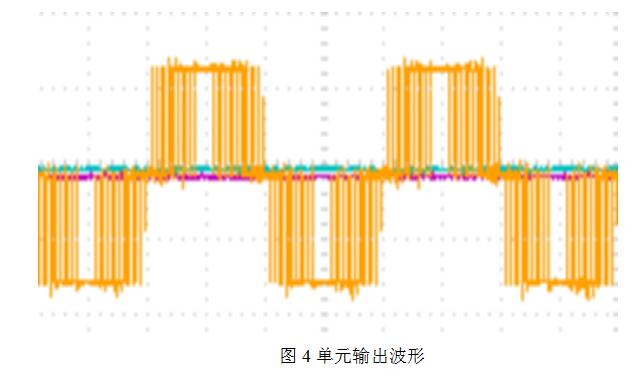 功率單元結(jié)構(gòu)上完全一致,模塊化的結(jié)構(gòu)設(shè)計(jì),使得功率單元可以任意互換,單元的外部接口只有兩個(gè)或四個(gè)輸出端子及兩個(gè)光纖插口,這使得維護(hù)和檢修更簡(jiǎn)單。每個(gè)單元通過(guò)IGBT逆變橋?qū)崿F(xiàn)正弦PWM控制,可得到如圖4所示的單元輸出波形。
