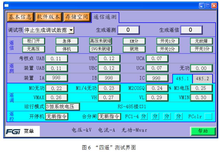柜門(mén)人機(jī)界面還提供了裝置未上高壓時(shí),通訊信息的遙信遙測(cè)驗(yàn)證功能,方便現(xiàn)場(chǎng)調(diào)試人員對(duì)通信數(shù)據(jù)通道及數(shù)據(jù)進(jìn)行測(cè)試(如圖6所示)。