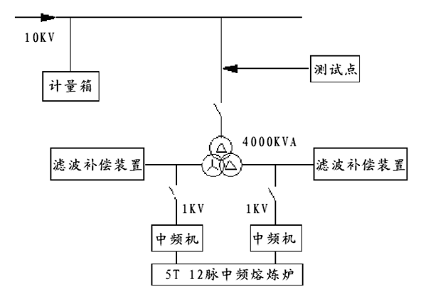 湖南某機械鑄造廠中頻熔煉爐現(xiàn)場配電系統(tǒng)一次圖,如圖1所示。