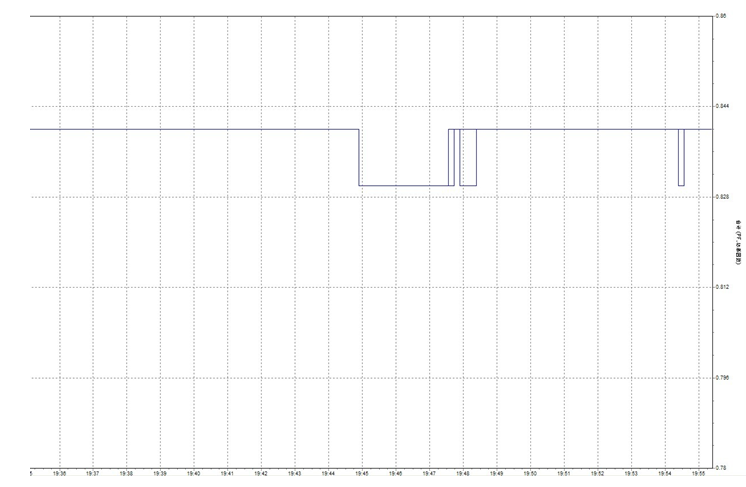 圖4為記錄的玉礦線SVG投運(yùn)前功率因數(shù),有圖4可以看出未投運(yùn)SVG,功率因數(shù)為0.83左右,對(duì)電網(wǎng)的穩(wěn)定性不利。