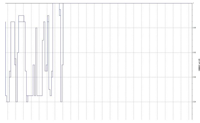 圖8是記錄的10kv1段直新線上的SVG投運(yùn)前后系統(tǒng)的功率因數(shù)曲線,左半部分是投運(yùn)前,可以看出功率因數(shù)較低,波動(dòng)較大;右半部分為SVG投運(yùn)后的功率因數(shù),可以看出功率因數(shù)為1,可見(jiàn)SVG對(duì)改善功率因數(shù)效果顯著。
