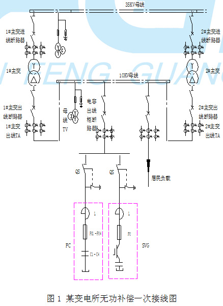某變電所無功補(bǔ)償裝置改造方案的一次側(cè)接線圖如圖1所示: