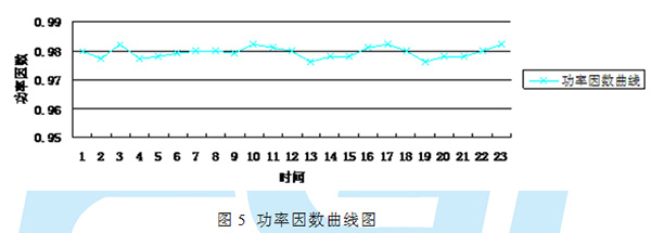設(shè)備運(yùn)行電壓曲線如圖3所示,電流曲線如圖4所示,功率因數(shù)曲線如圖5所示