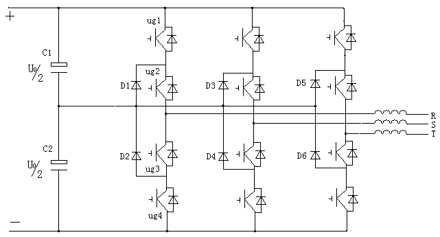 當裝置功率大時,需要這樣幾個主電路并聯(lián),并聯(lián)時需考慮均流與環(huán)流及其相位問題,同時采用二極管鉗位的三電平電路需考慮直流端電容中點電位不平衡問題,在軟件PWM波生成電路中尤其注重此點。